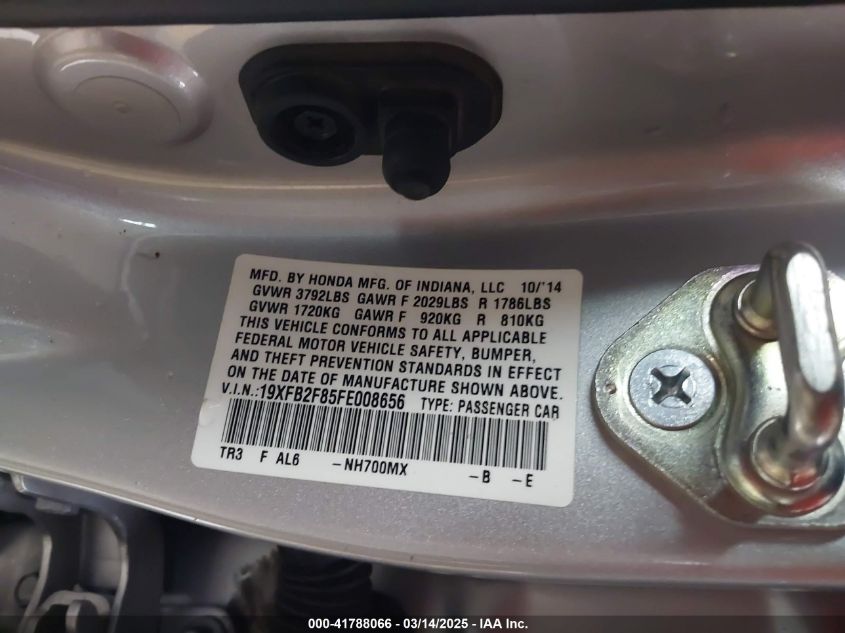 2015 HONDA CIVIC 2015 Gasoline, 1.8, Front wheel drive, VIN - 19XFB2F85FE****** from the USA