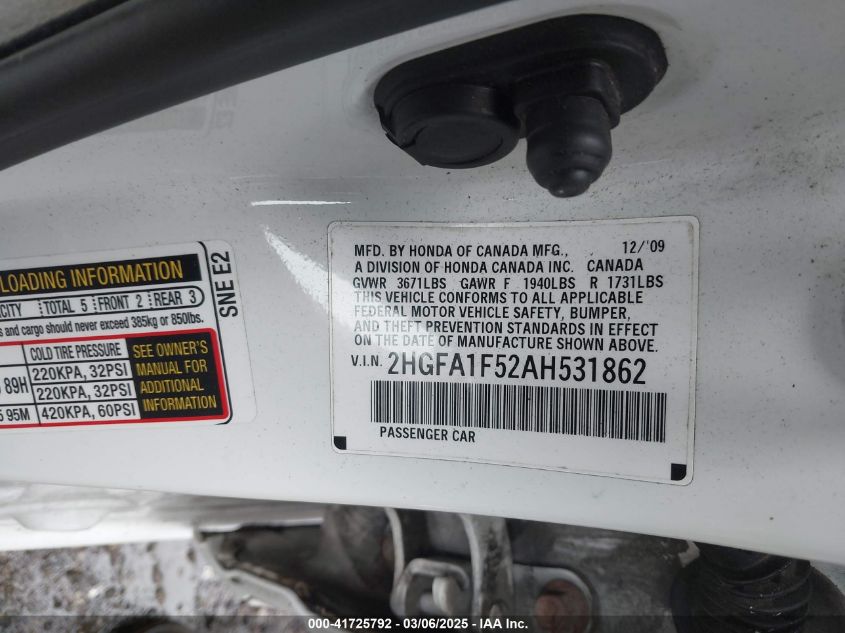 2010 HONDA CIVIC 2010 Gasoline, 1.8, Front wheel drive, VIN - 2HGFA1F52AH****** from the USA