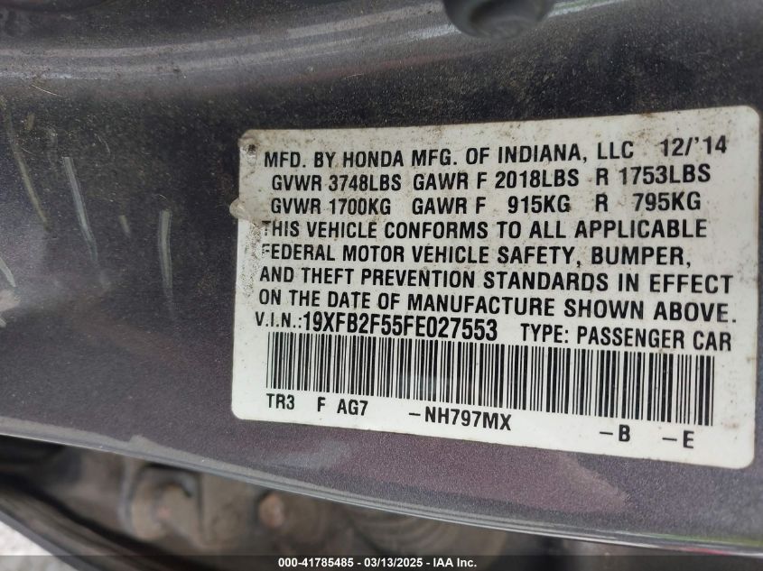 Color GrayCylinders 4Drive Front wheel driveVIN 19XFB2F55FE******State Run & Drive VerifiedDamage Front or back AutoRIA