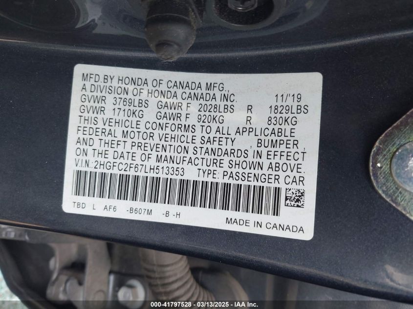 2020 HONDA CIVIC 2020 Gasoline, 2.0, Front wheel drive, VIN - 2HGFC2F67LH****** from the USA