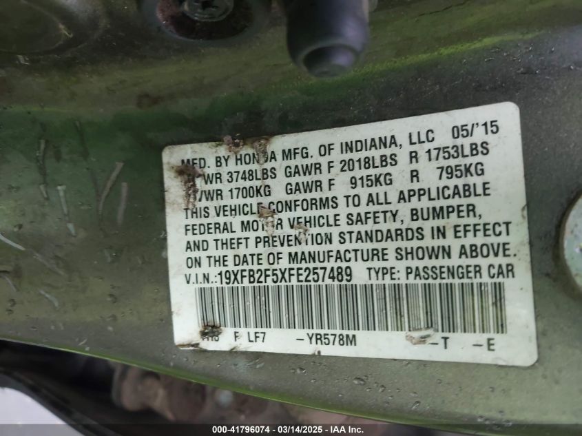 2015 HONDA CIVIC 2015 Gasoline, 1.8, Front wheel drive, VIN - 19XFB2F5XFE****** from the USA
