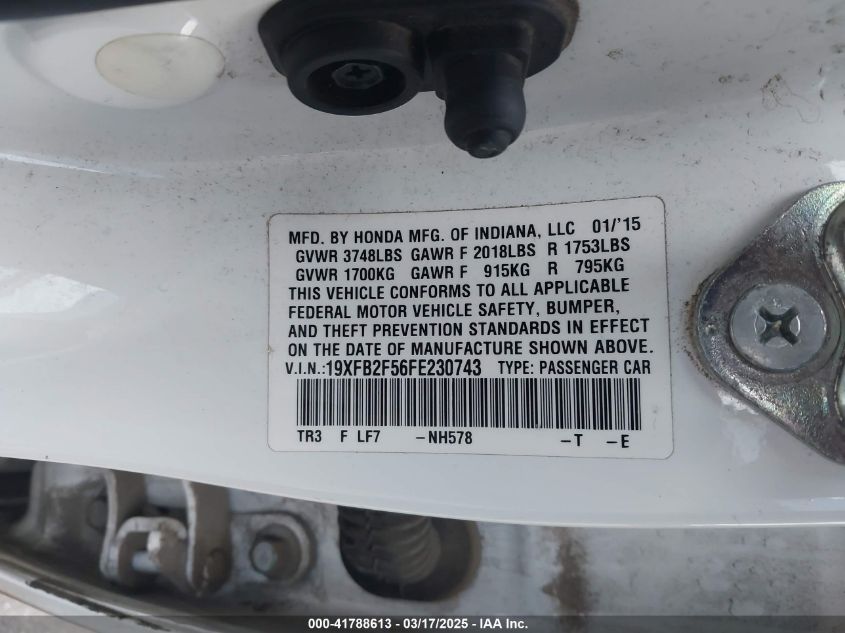 2015 HONDA CIVIC 2015 Gasoline, 1.8, Front wheel drive, VIN - 19XFB2F56FE****** from the USA