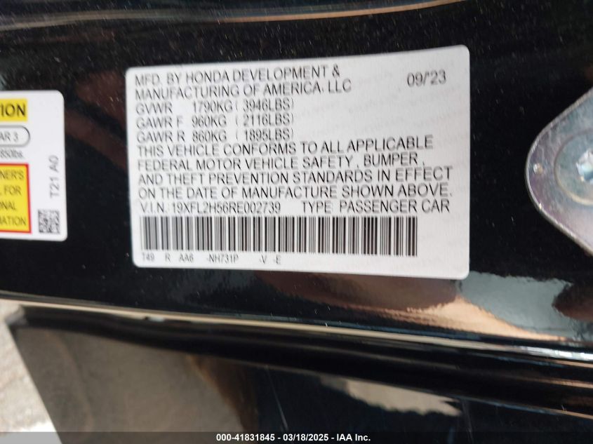 Color BlackCylinders 4Drive Front wheel driveVIN 19XFL2H56RE******State Run & Drive VerifiedDamage Front or back AutoRIA