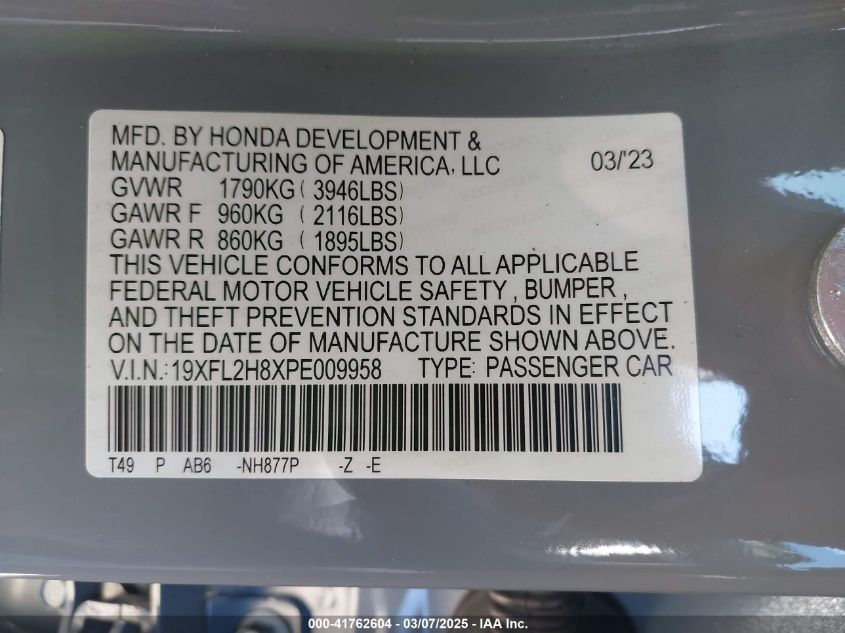 Color GrayCylinders 4Drive Front wheel driveVIN 19XFL2H8XPE******State Run & Drive VerifiedDamage Front or backAuction date 2025-03-20 AutoRIA