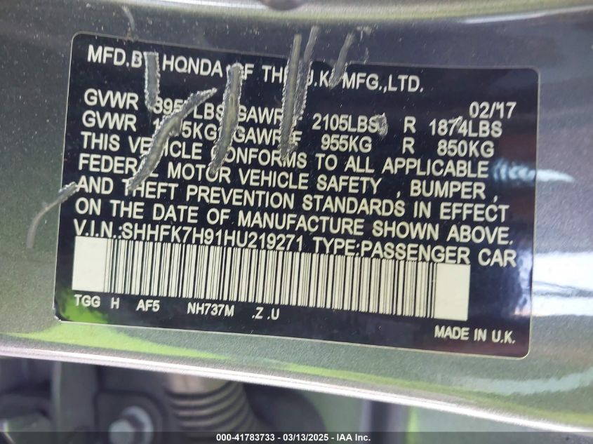 2017 HONDA CIVIC 2017 Gasoline, 1.5, Front wheel drive, VIN - SHHFK7H91HU****** from the USA