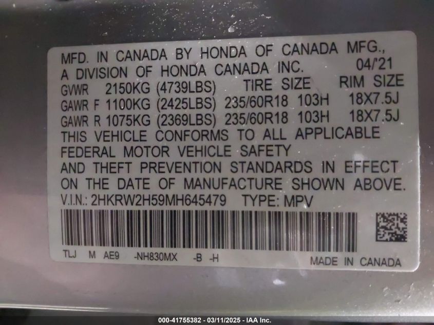 2021 HONDA CR-V 2021 Gasoline, 1.5, Full drive, VIN - 2HKRW2H59MH****** from the USA