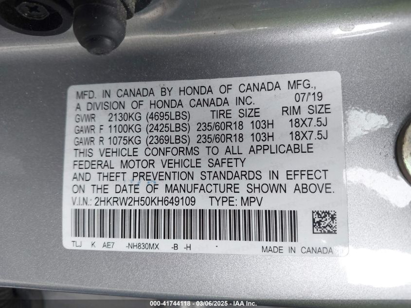 2019 HONDA CR-V 2019 Gasoline, 1.5, Full drive, VIN - 2HKRW2H50KH****** from the USA