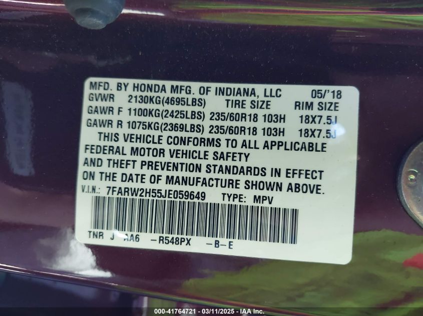 2018 HONDA CR-V 2018 Gasoline, 1.5, Full drive, VIN - 7FARW2H55JE****** from the USA