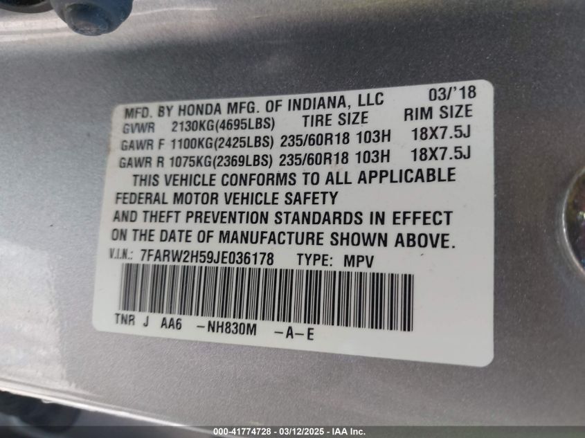 2018 HONDA CR-V 2018 Gasoline, 1.5, Full drive, VIN - 7FARW2H59JE****** from the USA