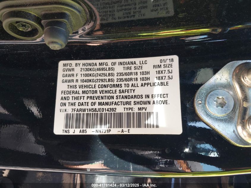 Color BlackCylinders 4Drive Front wheel driveVIN 7FARW1H58JE******State Run & Drive VerifiedDamage Front or back AutoRIA