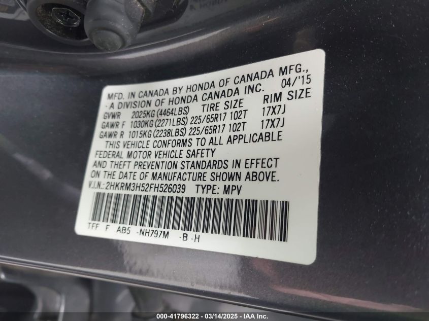 2015 HONDA CR-V 2015 Gasoline, 2.4, Front wheel drive, VIN - 2HKRM3H52FH****** from the USA