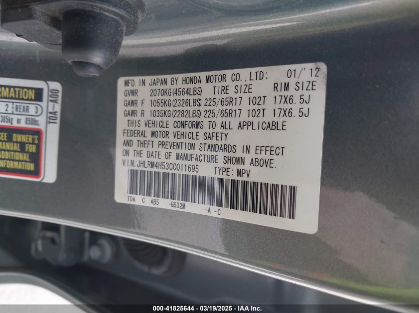 2012 HONDA CR-V 2012 Gasoline, 2.4, Full drive, VIN - JHLRM4H53CC****** from the USA