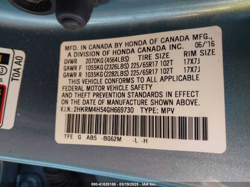 2016 HONDA CR-V 2016 Gasoline, 2.4, Full drive, VIN - 2HKRM4H54GH****** from the USA