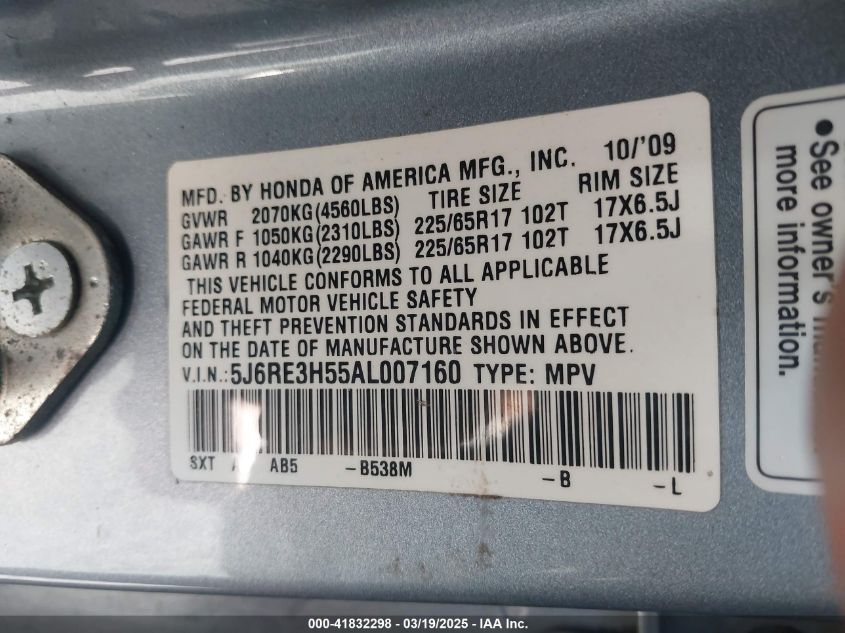 2010 HONDA CR-V 2010 Gasoline, 2.4, Front wheel drive, VIN - 5J6RE3H55AL****** from the USA