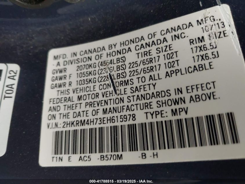 Color BlueCylinders 4Drive Full driveVIN 2HKRM4H73EH******State Run & Drive VerifiedDamage Back AutoRIA