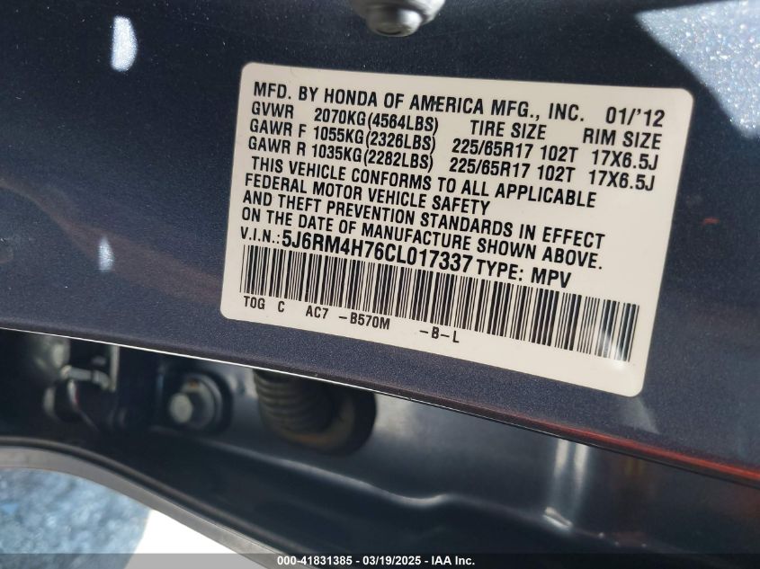 2012 HONDA CR-V 2012 Gasoline, 2.4, Full drive, VIN - 5J6RM4H76CL****** from the USA