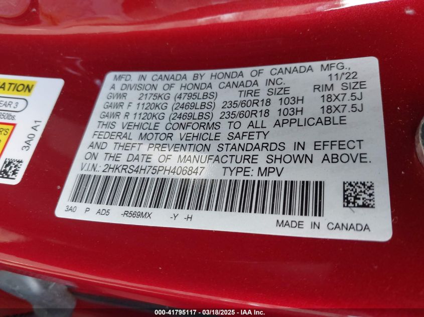Color RedCylinders 4Drive Full driveVIN 2HKRS4H75PH******State Run & Drive VerifiedDamage Front and back AutoRIA