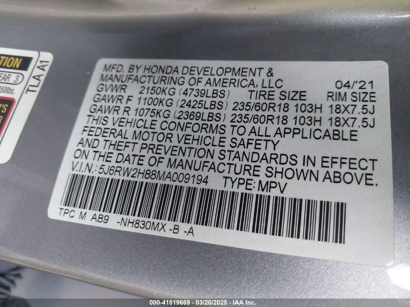 2021 HONDA CR-V 2021 Gasoline, 1.5, Full drive, VIN - 5J6RW2H88MA****** from the USA