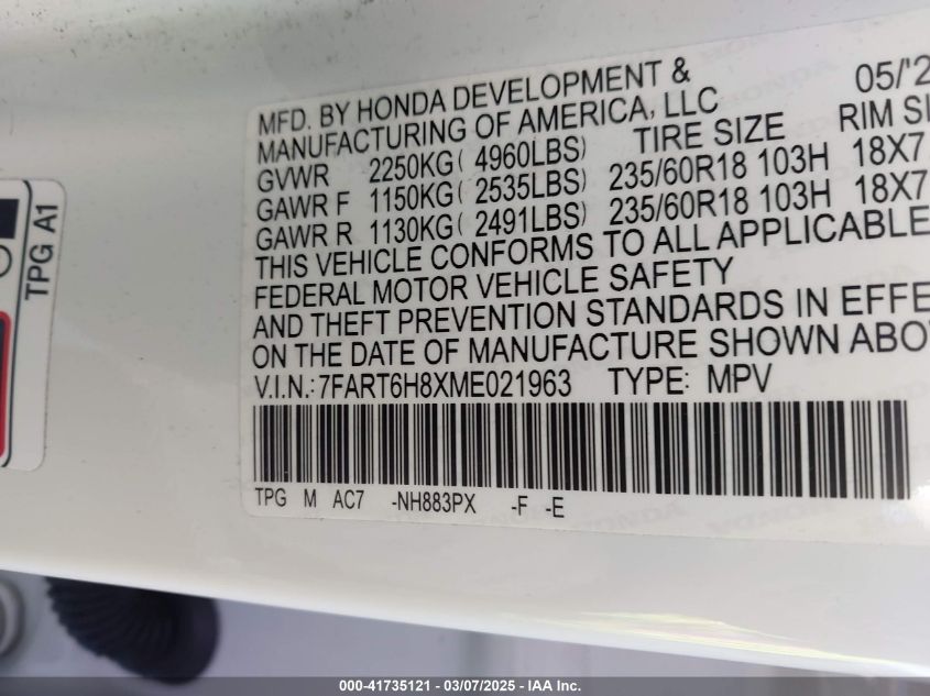 2021 HONDA CR-V HYBRID 2021 Hybrid, 2.0, Full drive, VIN - 7FART6H8XME****** from the USA