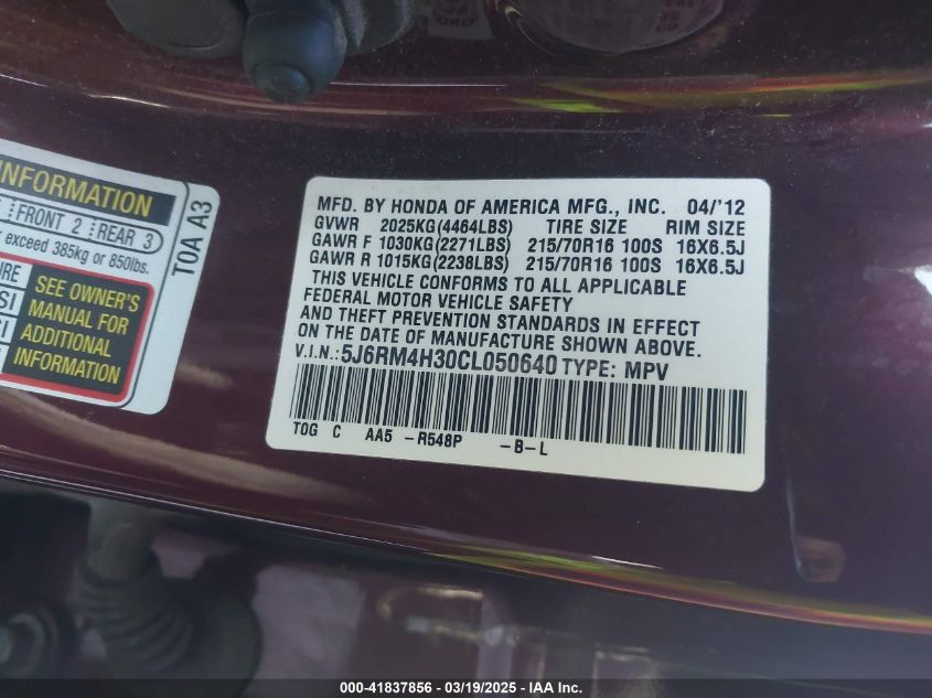 2012 HONDA CR-V 2012 Gasoline, 2.4, Full drive, VIN - 5J6RM4H30CL****** from the USA