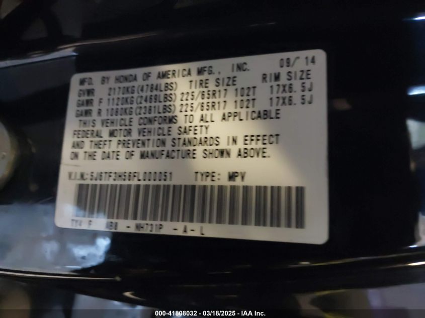 Color BlackCylinders 4Drive Front wheel driveVIN 5J6TF3H56FL******State Run & Drive VerifiedDamage Front or back AutoRIA