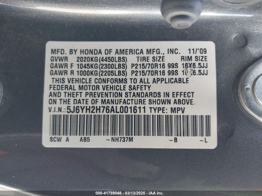 Color GrayCylinders 4Drive Full driveVIN 5J6YH2H76AL******State Run & Drive VerifiedDamage Front and back AutoRIA