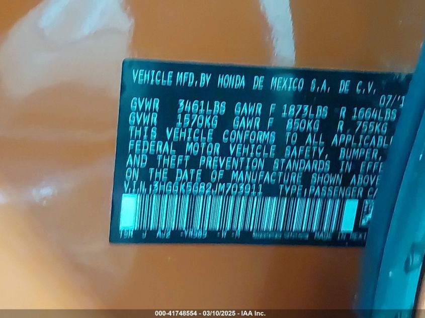 Color OrangeCylinders 4Drive Front wheel driveVIN 3HGGK5G82JM******State Run & Drive VerifiedDamage Right sideAuction date 2025-03-20 AutoRIA