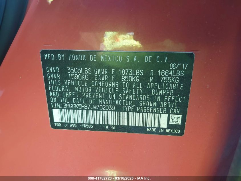 Color OrangeCylinders 4Drive Front wheel driveVIN 3HGGK5H87JM******State Run & Drive VerifiedDamage Front or back AutoRIA