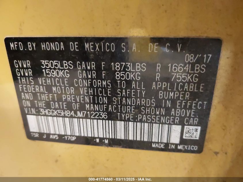 Color YellowCylinders 4Drive Front wheel driveVIN 3HGGK5H84JM******State Run & Drive VerifiedDamage Front or back AutoRIA