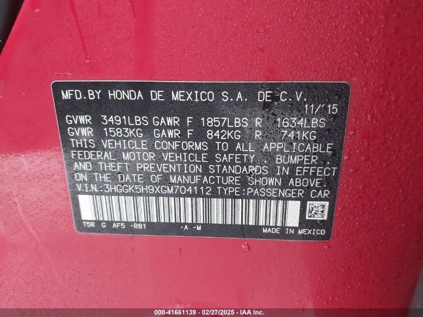 2016 HONDA FIT 2016 Gasoline, 1.5, Front wheel drive, VIN - 3HGGK5H9XGM****** from the USA