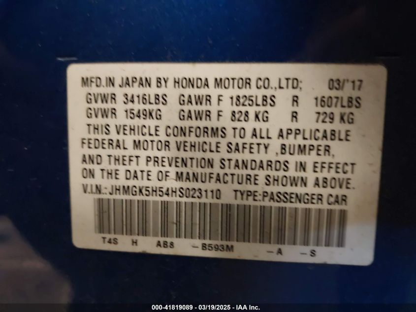 Color BlueCylinders 4Drive Front wheel driveVIN JHMGK5H54HS******State Run & Drive VerifiedDamage Back AutoRIA