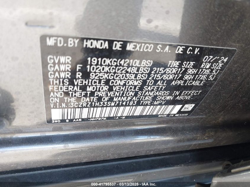 2025 HONDA HR-V 2025 Gasoline, 2.0, Front wheel drive, VIN - 3CZRZ1H33SM****** from the USA