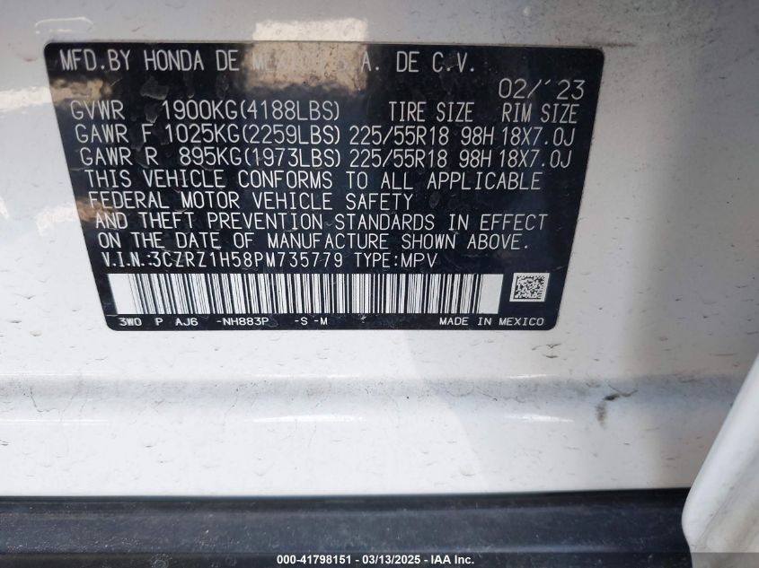 2023 HONDA HR-V 2023 Gasoline, 2.0, Front wheel drive, VIN - 3CZRZ1H58PM****** from the USA