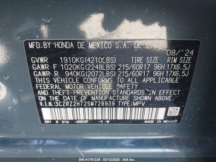 2025 HONDA HR-V 2025 Gasoline, 2.0, Full drive, VIN - 3CZRZ2H72SM****** from the USA
