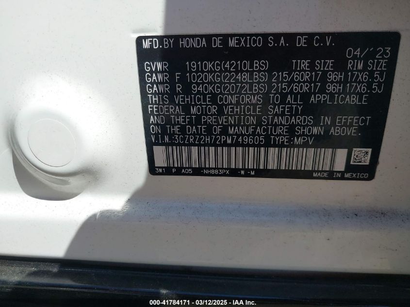 2023 HONDA HR-V 2023 Gasoline, 2.0, Full drive, VIN - 3CZRZ2H72PM****** from the USA