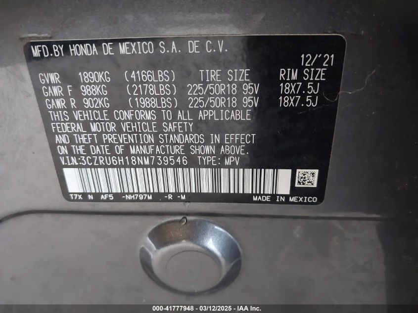 2022 HONDA HR-V 2022 Gasoline, 1.8, Full drive, VIN - 3CZRU6H18NM****** from the USA