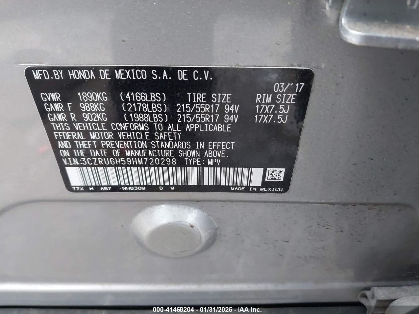 2017 HONDA HR-V 2017 Gasoline, 1.8, Full drive, VIN - 3CZRU6H59HM****** from the USA