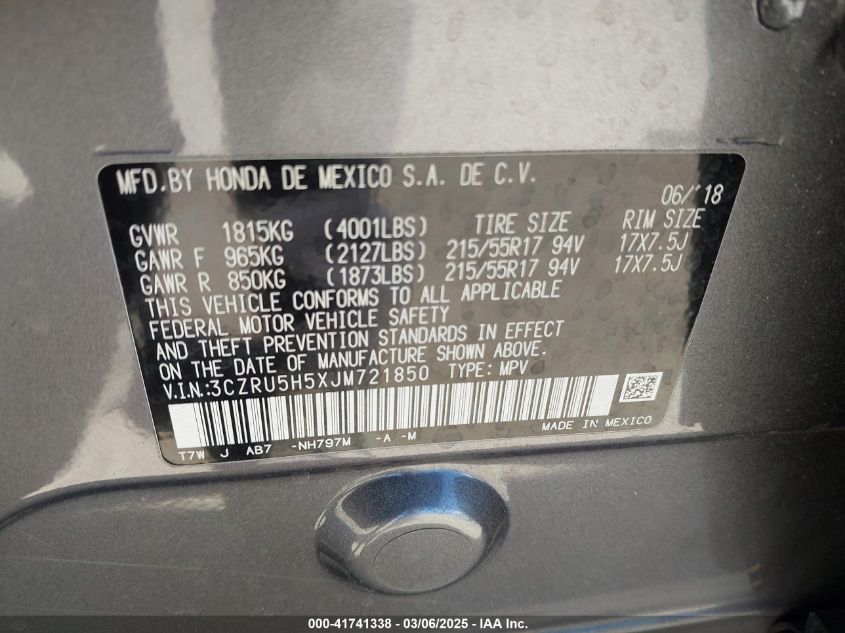 2018 HONDA HR-V 2018 Gasoline, 1.8, Front wheel drive, VIN - 3CZRU5H5XJM****** from the USA
