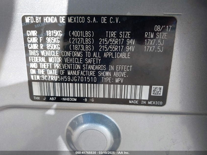 Color SilverCylinders 4Drive Front wheel driveVIN 3CZRU5H59JG******State Run & Drive VerifiedDamage Right side AutoRIA