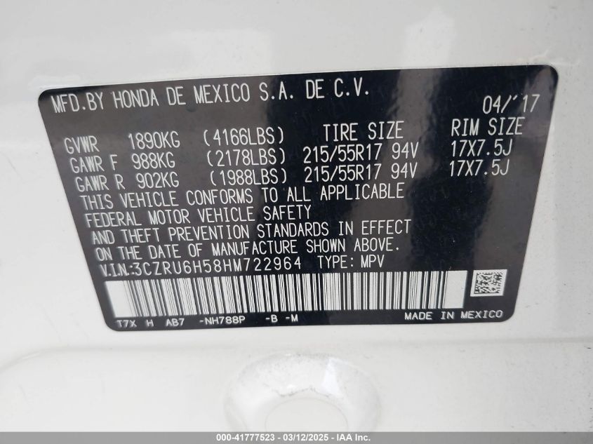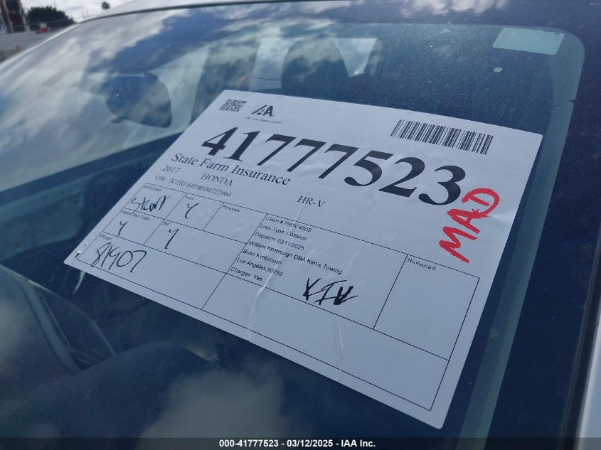 2017 HONDA HR-V 2017 Gasoline, 1.8, Full drive, VIN - 3CZRU6H58HM****** from the USA