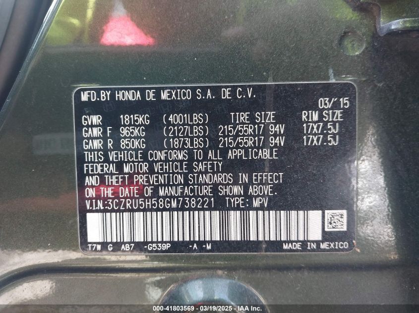 2016 HONDA HR-V 2016 Gasoline, 1.8, Front wheel drive, VIN - 3CZRU5H58GM****** from the USA