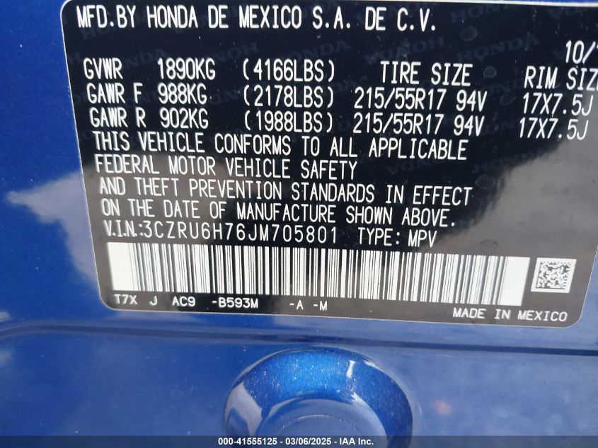 Color BlueCylinders 4Drive Full driveVIN 3CZRU6H76JM******State Run & Drive VerifiedDamage Front or back AutoRIA