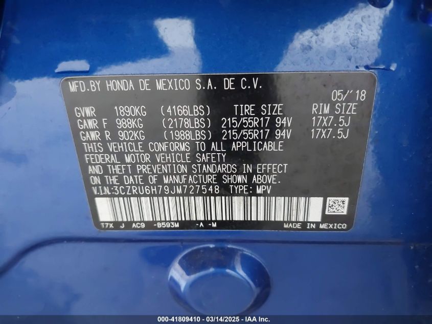Color BlueCylinders 4Drive Full driveVIN 3CZRU6H79JM******State Run & Drive VerifiedDamage Front and back AutoRIA