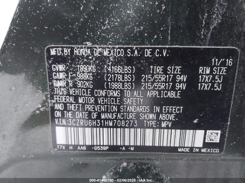 2017 HONDA HR-V 2017 Gasoline, 1.8, Full drive, VIN - 3CZRU6H31HM****** from the USA