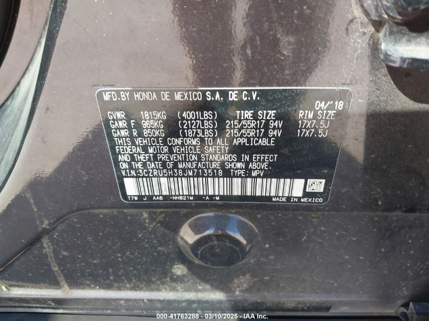 Color VioletCylinders 4Drive Front wheel driveVIN 3CZRU5H38JM******State Run & Drive VerifiedDamage Insignificant AutoRIA