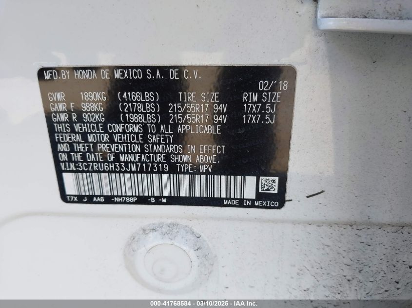 2018 HONDA HR-V 2018 Gasoline, 1.8, Full drive, VIN - 3CZRU6H33JM****** from the USA