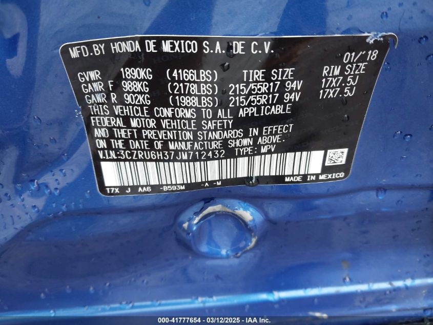 2018 HONDA HR-V 2018 Gasoline, 1.8, Full drive, VIN - 3CZRU6H37JM****** from the USA
