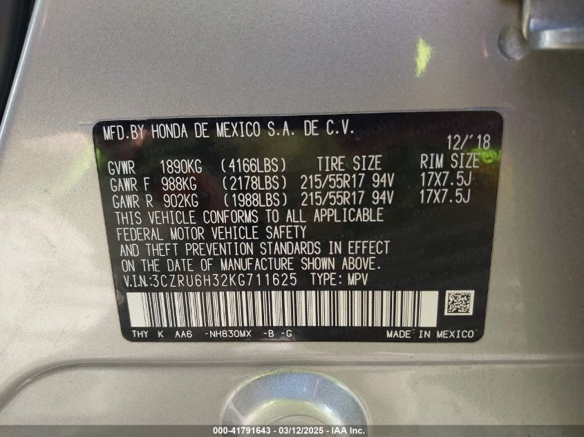 2019 HONDA HR-V 2019 Gasoline, 1.8, Full drive, VIN - 3CZRU6H32KG****** from the USA