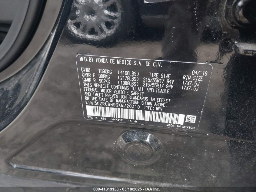 2019 HONDA HR-V 2019 Gasoline, 1.8, Full drive, VIN - 3CZRU6H93KM****** from the USA