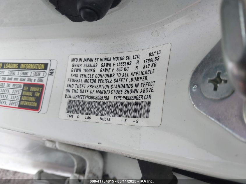 Color WhiteCylinders 4Drive Front wheel driveVIN JHMZE2H30DS******State Run & Drive VerifiedDamage From the sides AutoRIA